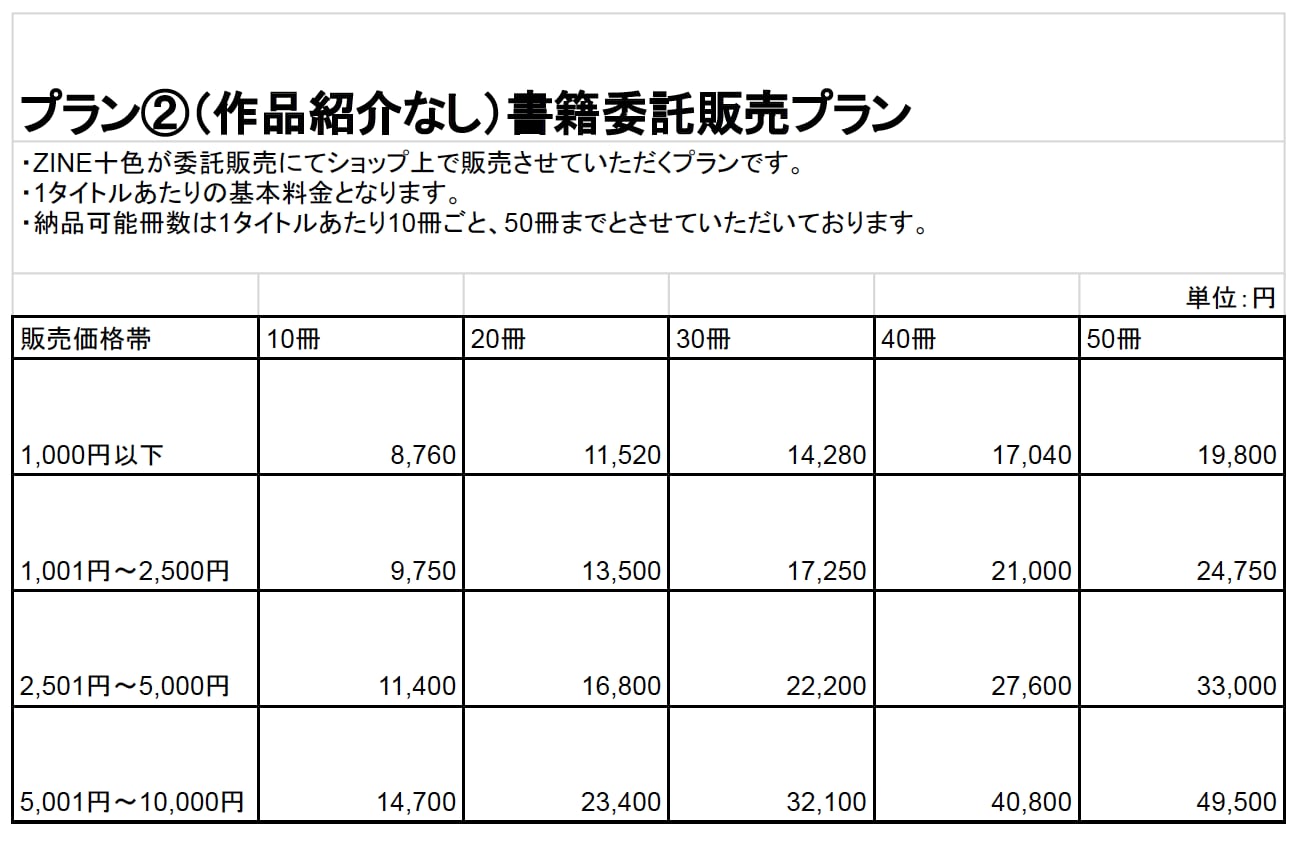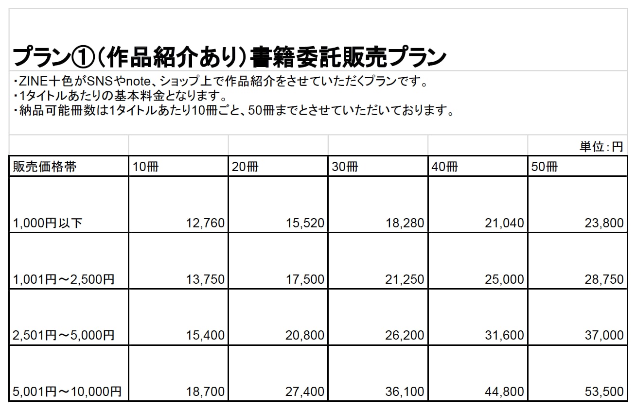 3. 「作品紹介ありプラン」(プラン①、プラン③)を選択した場合、ZINE十色編集部がnote、メルマガ、Instagram、ホームページ内でそれぞれ年間2回を目安に作品を紹介します。また、客観的な視点で作品の魅力を紹介するため、書籍全ページの内容がわかるデータ(PDFまたはスキャンデータ)の登録が必須となります。