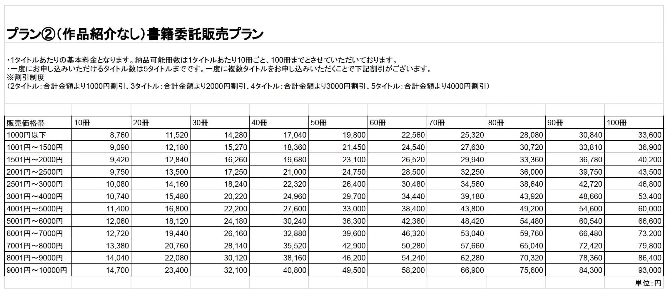 プラン②: (作品紹介なし) 書籍販売委託プラン・割引詳細
